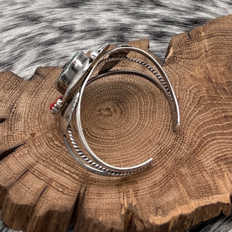 #VintageNavajo #TurquoiseCuff #CoralAndSilver #SterlingCuff #NavajoJewelry #SouthwestStyle #TurquoiseCoral #ArtisanSilver #VintageBracelet #NativeArtistry #StatementCuff #OldPawnStyle #HandmadeJewelry #SilverLeaves #RaindropDesign #ClassicNavajo #CollectorJewelry #TurquoiseLove #RetroStyle #CestLaBries