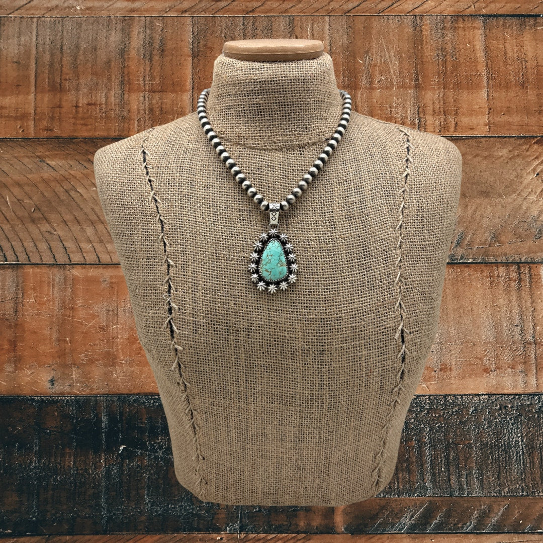 #AllisonLee #SnowhawkLee #Number8Mine #TurquoisePendant #NavajoArt #StatementPendant #SterlingSilver #NativeArtistry #PicketFenceBezel #SouthwestStyle #ArtisanJewelry #CollectorPiece #BoldDesign #TurquoiseLove #GalleryJewelry #HandcraftedArt #UniquePendant #FineSilver #ModernNavajo #CestLaBries